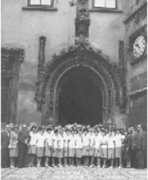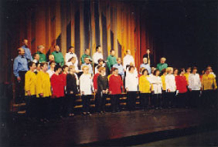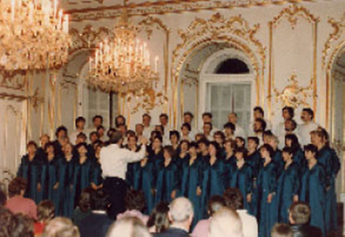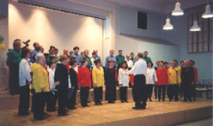 Échange avec le chœur Ondras de Novy Jicin, dirigé par Pietr Lichnovsky. Photo : concert à Novy Jicin (région de Moravie), 1998.