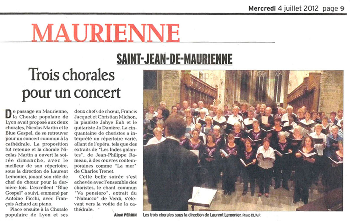 Quatre soirées consécutives en vallée de Maurienne, dont un grand concert en la cathédrale de St-Jean-de-Maurienne.